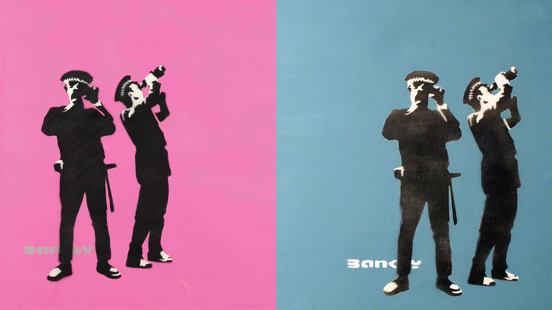 Banksy’s relationship with law enforcement is, to put it mildly, delicate and a theme he frequently addresses in his works. When the artist began his graffiti career in Bristol, the local police force had an especially harsh policy against graffiti; those caught were imprisoned for their ‘crimes’.