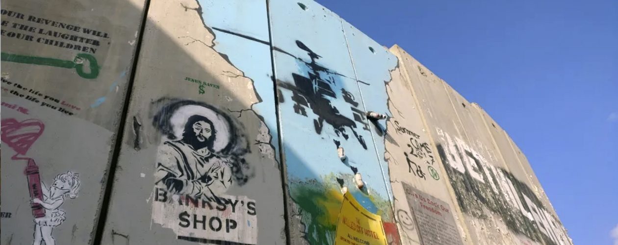 Banksy implies that creativity can defeat destruction by ‘revolution through drawing’.
