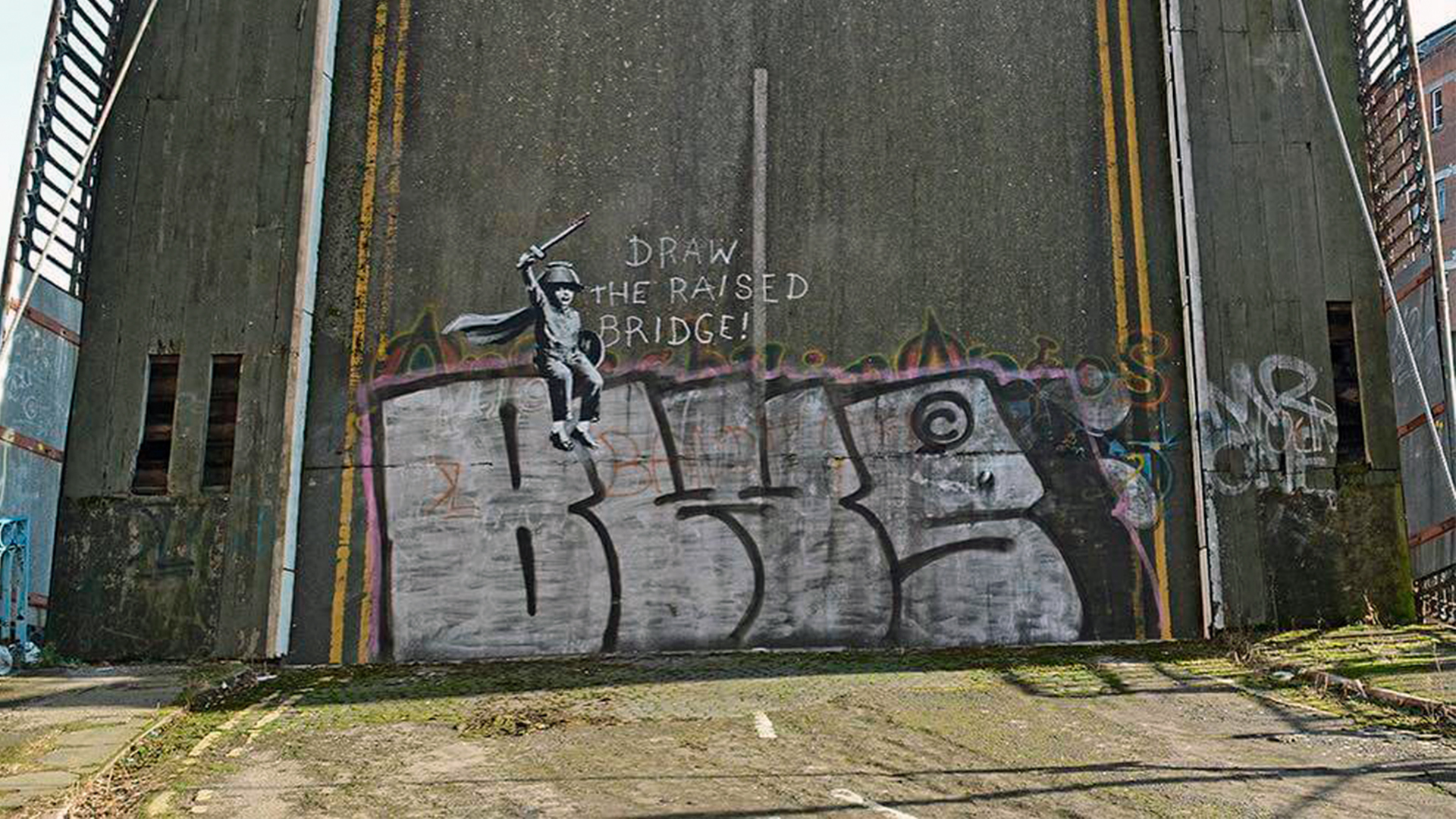 Draw The Raised Bridge appeared on 26 January 2018 on Scott Street Bridge in Hull, England.
