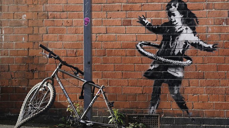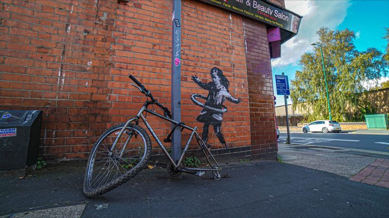 Beneath the artwork lies a critique of consumer society. The broken and abandoned state of the bicycle can be linked to Nottingham’s past economic decline; the city was shaken by the closure of the historic Raleigh bicycle factory in 2002, which resulted in the loss of nearly 300 jobs. Raleigh’s closure was seen as a consequence of cheap imports from the Far East, highlighting the devastating impact of global consumer culture on local economies. By using the broken bicycle, Banksy may be critiquing this economic decline and the consequences of consumer culture. While the girl hula-hooping with the broken bicycle tire embodies hope and innocence, it also draws attention to the indifference of consumer society and its impact on local communities.