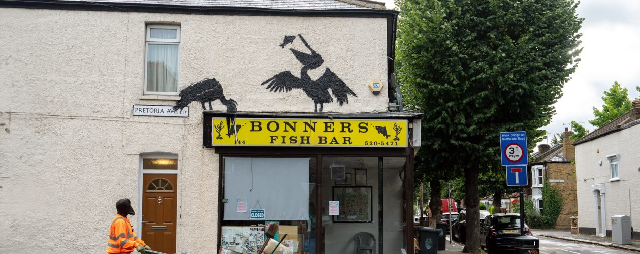 The piece, located on the wall of a Grade II listed building, could not be removed due to preservation laws. However, after being vandalized with silver spray paint, it was carefully restored.