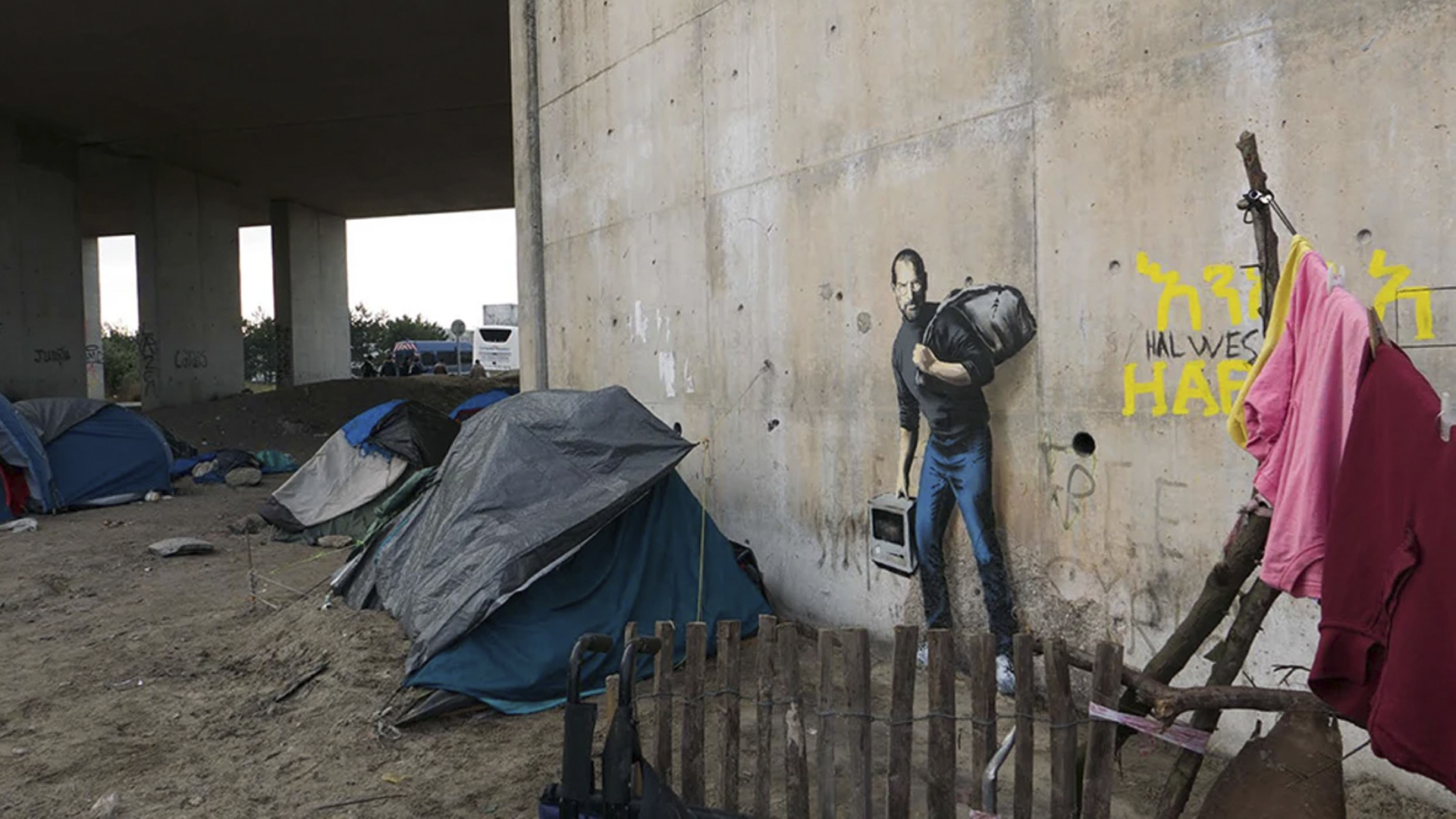 In 2015, The Son of a Migrant from Syria, more commonly known as the ‘Steve Jobs’ mural, appeared near the ‘Calais Jungle’ refugee camp in Calais, France.